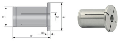 Weitere Schaftdurchmesser sind über Zwischenbüchsen spannbar
