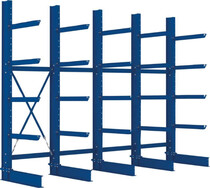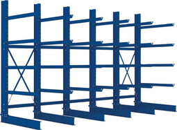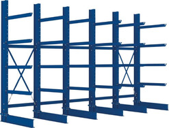 Ausführung: - für mittlere Lastanforderungen - für stehende und liegende Langgutlagerung, Lagerung von Tafel- und Plattenware - warmgewalzte Profile beidseitig gelocht für den nachträglichen Umbau von einseitig zu doppelseitig (durch Austausch des Fußteils) - Kragarme im Raster von 100 mm verstellbar - Aushebesicherung sichert gegen unbeabsichtigtes Ausheben bei der Ein- und Auslagerung - Erweiterungsoptionen und maßgenaue, individuelle Lösungen möglich - Farbe: RAL 5010 enzianblau