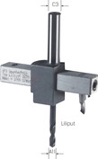 Bei der Arbeit mit einem Kreisschneider wird mithilfe eines Hartmetallbohrers das notwendige Führungsloch vorgebohrt. Im Anschluss werden in dieses Führungsloch der Führungszapfen des Kreisschneiders eingeführt und die Bohrarbeit ausgeführt.