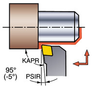 Der Einstellwinkel ist der Winkel zwischen Schneidkante und Vorschubrichtung. Ein kleiner Einstellwinkel vermindert die Belastung an der Schneidkante. Die Schnittkräfte verteilen sich in axialer und radialer Richtung, wodurch bei schlanken Werkstücken Vibrationen möglich sind.