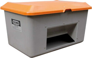 Streugutbehälter CEMO, 400 l B1210xT820xH670 mm mit Entnahmeöffnung grau/orange