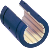 Die zylindrischen Standardlager RJUM bestehen aus einer austauschbaren Gleitfolie, die formschlüssig in einen anodisierten Aluminiumadapter geclipst wird. Der Axialhalt der Gleitfolie wird über eine Ringnut realisiert.