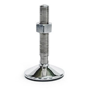 Stellfüße aus Stahl oder Edelstahl mit drehbar gelagerter Gewindespindel und Gummi-Aufstellfläche. Die massive Gummiauflage ist durch Aufvulkanisieren fest mit dem Blechteller verbunden. Die Gummiauflage hat eine ausgezeichnete Bodenhaftung. Sie wirkt körperschalldämmend und erschwert die Übertragung von Schwingungen und Stößen auf den Boden.