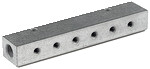 Durchgangsverteiler, Ein-/Ausgang G1/2, Anschluss 3 x G1/2, Betriebsdr. (Luft o. Wasser) max.15 bar, Umgebungstemp. 1 °C bis 50 °C. Aus Kunststoff PA6 GF 30. End- und Durchgangsverteilerdosen aus hochfestem, glasfaserverstärktem Kunststoff (PA6 GF 30) mit großer Anwendungsvielfalt. Wahlweise 1 oder bis zu 3 Anschlussmöglichkeiten sowie 2 Gewindegrößen beim Eingang- und Ausganggewinde (nicht kombinierbar). Zur vertikalen Weiterführung von Medien. Universalverteilerdose mit bis zu 5 Anschlussmöglichkeiten. Zur vertikalen und/oder horizontalen Weiterführung von Medien oder dem sicheren Anschluss (Vermeidung vorstehender Bauteile) von z.B. Druckminderer oder Wartungsgerät geeignet. Alle Verteilerdosen haben einen robusten Messing-Gewindeeinsatz, der durch seine Formgebung gegen Verdrehung und gegen axiale Verschiebung gesichert ist. Für Medien Druckluft (Umgebungstemperatur -10 °C bis 50 °C) oder Wasser (Umgebungstemperatur 1 °C bis 50 °C) geeignet. Bohrbildmaße sind bei allen Verteilerdosen identisch, damit wird ein einfacher und flexibler Austausch zwischen End- Durchgangs- und Universalverteilerdose gewährleistet. Achtung: Beachten Sie, dass die Verteilerdosen nicht in Gefahrenbereichen installiert werden sollten. Gefahrenbereiche stellen z.B. Transportwege, Fluchtwege etc. dar.