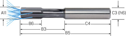 Aufsteck-Reibahlen werden mit Aufsteckhaltern kombiniert. Aufsteck-Reibahlen können auch zum Reiben von durchgehenden Bohrungen eingesetzt werden, wenn die Späne in Richtung der Schneide abgeführt werden. Kurze Anschnitte machen Reibahlen auch für Sacklochbohrungen geeignet.
