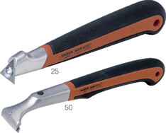 Mit Schabern finden sich scharfkantige Werkzeuge, die schon seit der Steinzeit bekannt sind und die zum Schaben, das heißt zur Veränderung der Oberflächenbeschaffenheit von Werkstücken, dienen. Schaber verfügen über mindestens eine Schneide. Die Arbeit des Schabens wird zu den spanenden manuellen Fertigungstechniken gezählt. Das Schaben erfolgt in der Regel nach den anderen Oberflächenbearbeitungen, etwa dem Feilen, dem Hobeln oder dem Fräsen, wenn die Flächen verbessert (etwa geebnet) werden sollen. Nach vorangehender Bearbeitung haben die Werkstücke meist eine raue und unebene Beschaffenheit, zu deren Begradigung Schaber eingesetzt werden. Finden Sie in unserem Sortiment eine Auswahl hochwertiger Schaber für unterschiedliche Einsatzbereiche, darunter Flachschaber, Dreikant-Schaber und Universalschaber von namhaften Herstellern wie Rennsteig Werkzeuge, GRATtec, BAHCO, Hesse und Tajima.