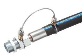 Schlauchfangsicherung mit 3, 4 oder 5 mm hochzugfestem Drahtseil. Für alle Schläuche* DIN 20066 & Überwurf-Armaturen.