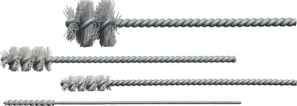 - Besatz aus Schleifborsten mit Aluminiumoxyd (ab Ø 3,5 mm) oder aus Siliziumcarbid (bis Ø 3,2 mm)