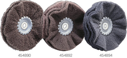 - mit Schleifleinen kombinierte Vliesfächerwalzen ermöglichen einen höheren Materialabtrag und ein gröberes Schliffbild mit größerer Rauhtiefe