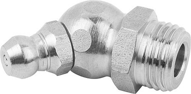 KEGELSCHMIERNIPPEL DIN71412, FORM:B ABGEWINKELT 45° M. 6-KANT, M10X1, L=23, EDELSTAHL BLANK