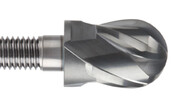Runde Schneidplatten haben einen sehr großen Eckenradius. Die ermöglicht starke Schrupp-Bearbeitungen auch im unterbrochenen Schnitt, der z. B. beim Überdrehen von Längsnuten auftritt.