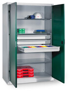 Schwerlastschrank mit mittigem Schubladenblock