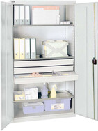 Werkzeugschrank C+P, B1200xT500xH1950 mm RAL 7035, 4 Fachböden 3 Schubladen unten CP
