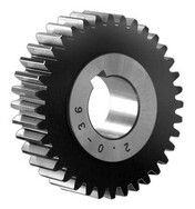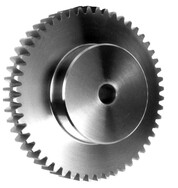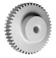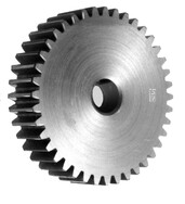 Bei einem Stirnrad, oftmals auch als Zylinderrad bezeichnet, handelt es sich um ein häufig verwendetes Zahnrad. Ein Stirnrad ist eine zylindrische Scheibe, die auf ihrem gesamten Umfang verzahnt ist. In ihrer geradverzahnten Ausführung erzeugen sie keine Axialkräfte und eignen sich daher besonders für die Übertragung großer Umfangskräfte. Das Stirnrad und sein Gegenrad, bei dem es sich entweder um eine stirnverzahnte Welle oder ebenfalls um ein Stirnrad handelt, laufen parallel zueinander. Daher müssen Fluchtungsfehler möglichst gering gehalten werden, da sich dies erheblich auf die Lebensdauer der Stirnräder bemerkbar macht. Als Standard Material in diesem Bereich sind Stahl, Messing und Kunststoff zu nennen. Die Moduleinteilung errechnet sich aus dem Maß p von Zahnmitte zu Zahnmitte.