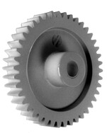 Bei einem Stirnrad, oftmals auch als Zylinderrad bezeichnet, handelt es sich um ein häufig verwendetes Zahnrad. Ein Stirnrad ist eine zylindrische Scheibe, die auf ihrem gesamten Umfang verzahnt ist. In ihrer geradverzahnten Ausführung erzeugen sie keine Axialkräfte und eignen sich daher besonders für die Übertragung großer Umfangskräfte. Das Stirnrad und sein Gegenrad, bei dem es sich entweder um eine stirnverzahnte Welle oder ebenfalls um ein Stirnrad handelt, laufen parallel zueinander. Daher müssen Fluchtungsfehler möglichst gering gehalten werden, da sich dies erheblich auf die Lebensdauer der Stirnräder bemerkbar macht. Als Standard Material in diesem Bereich sind Stahl, Messing und Kunststoff zu nennen. Die Moduleinteilung errechnet sich aus dem Maß p von Zahnmitte zu Zahnmitte.