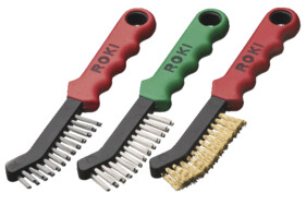 - verzinkter Drehdraht mit einfacher Besatzspirale aus gewelltem Stahl-, Messingdraht oder aus Nylonborsten