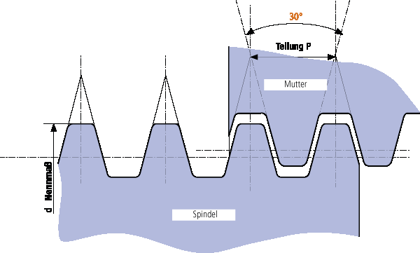 Bei Trapezgewindetrieben herrscht zwischen den Gewindeflanken und der