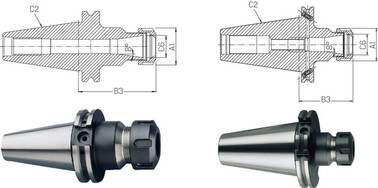 - auch für Standard-Spannzangen ER nach ISO 15488 (Vorsicht - B3 Maß ändert sich)