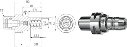 - auch für Standard-Spannzangen ER nach ISO 15488 (Achtung: Bei Verwendung mit Standard-Spannzangen wird das B3 Maß länger)