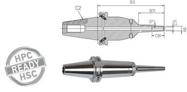 - sehr gut geeignet für Hochgeschwindigkeitsbearbeitung, mit Steilkegel, ISO 7388-2 BT 40 / BT 50 Form JD/JF