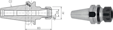 - auch für Standard-Spannzangen ER nach ISO 15488 (Achtung: Bei Verwendung mit Standard-Spannzangen wird das B3 Maß länger)