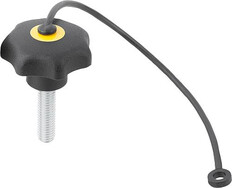 STERNGRIFF ÄHNLICH DIN6336 MIT SICHERUNGSBAND D=M06X40, D1=32, FORM:LS, THERMOPLAST SCHWARZ,